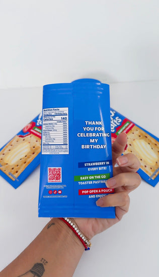 B) Assembled FILLED Bags: If you select the "filled" option, bags will arrive, assembled with a Pop Tarts already inside.