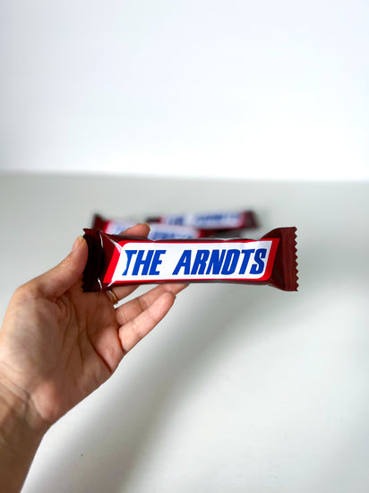A) Printed UNFILLED Bags: If you select the "unfilled" option, bags will be assembled, but unfilled. This means that once they arrive to you, you can fill them with 1.86oz Snickers! Adding snack directly inside will result in grease stains. Each bag comes with adhesive so that once you fill your bags, you will be able to seal them without any additional supplies.