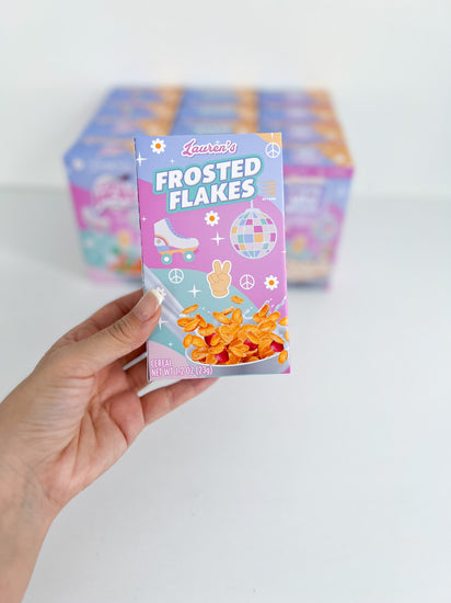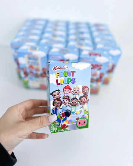 Frosted Mini Wheats, Frosted Flakes, Corn Pops, Apple Jacks, Froot Loops, Rice Krispies, & Cocoa Krispies