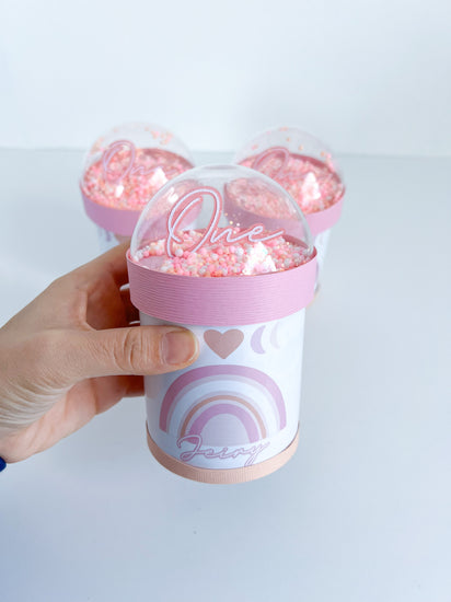 B) Pringles can with Dome (Rotating): Cans will be mailed assembled. Dome will be filled with tube confetti and/or foam balls. Pringles can be customized in any theme with your child's name and/or age. (Age will be used if name is longer than 5 letters)