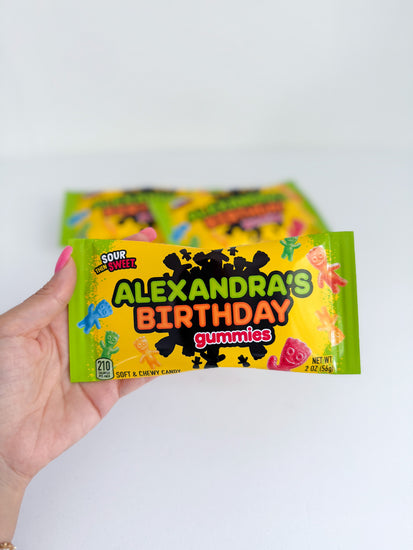 A) Printed UNFILLED Bags: If you select the "unfilled" option, bags will be assembled, but unfilled. This means that once they arrive to you, you can fill them with 2oz Sour Patch Kids! Adding snack directly inside will result in grease stains. Each bag comes with adhesive so that once you fill your bags, you will be able to seal them without any additional supplies.