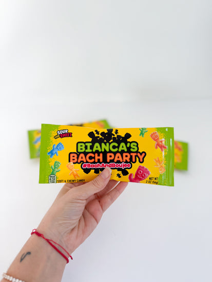B) Assembled FILLED Bags: If you select the "filled" option, bags will arrive, assembled with a 2oz Sour Patch Kids bag already inside.